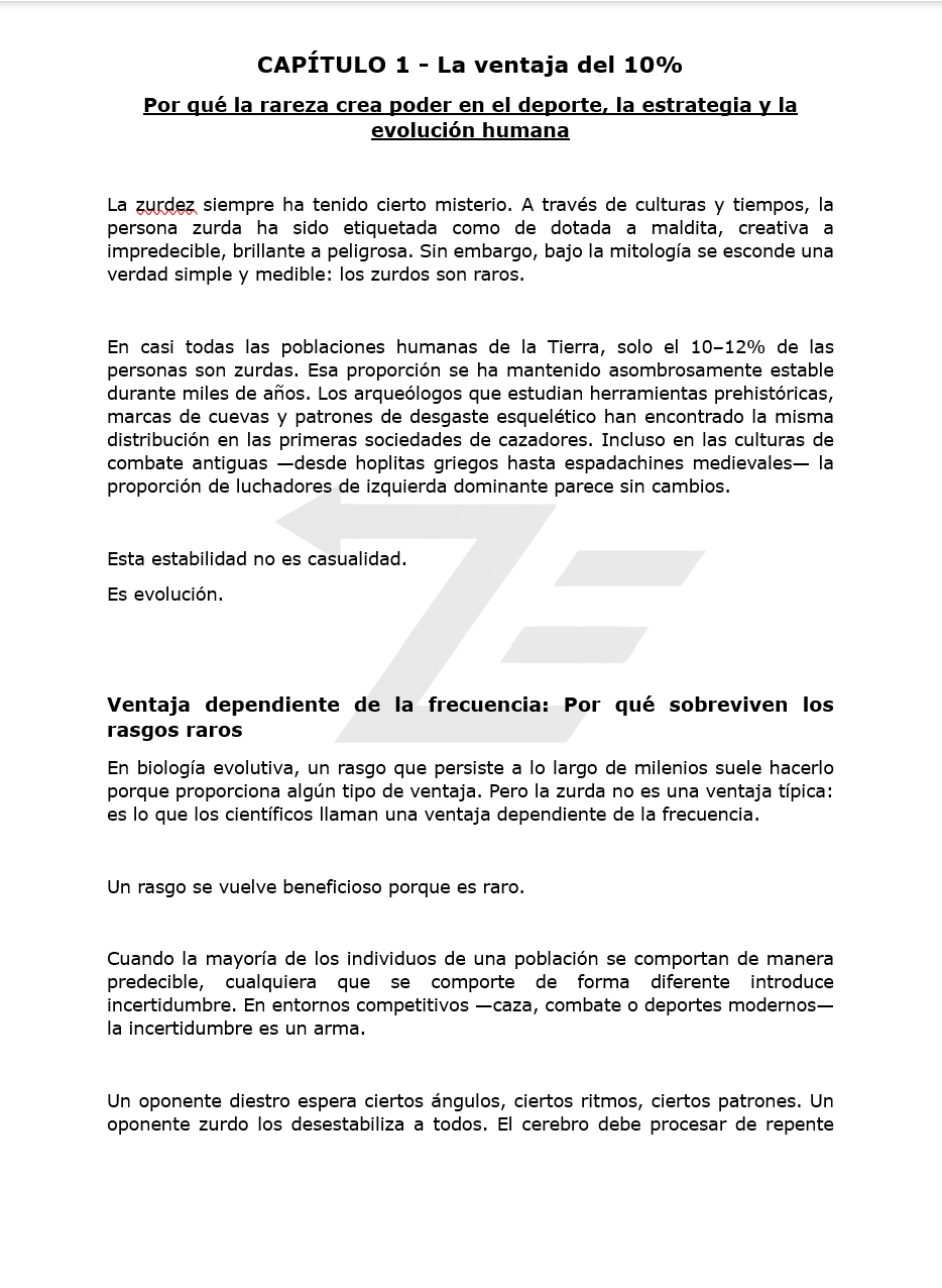 Pero Zenith Zurdo es más que un estudio del deporte. Es un modelo para pensar de forma diferente en un mundo construido para otra persona. Descubrirás cómo el cerebro Zurdo percibe, se adapta y anticipa con una claridad única; cómo los ángulos, patrones y asimetría se convierten en armas; y cómo la identidad se transforma en dominio cuando la rareza se abraza en lugar de reprimirla.